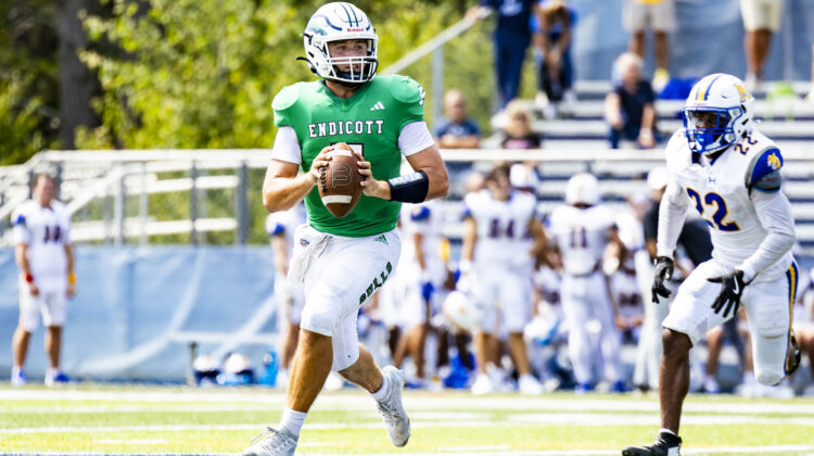 Former Peabody High football standout Shea Lynch led Endicott College’s football team (1-0) to a 31-21 home victory against Misericordia Saturday. The junior quarterback completed 20 of 28 passes for 231 yards, tossing a 69-yard touchdown pass to Adam Goodfellow and scoring a 3-yard rushing touchdown in the first quarter. The Gulls are back in action Saturday at home against Muhlenberg (noon). (Kaeli Talora)